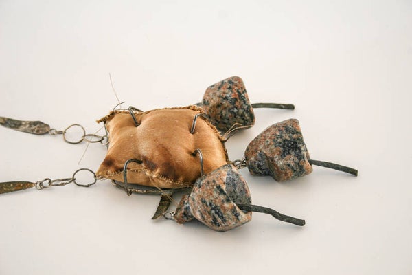 Textile, silver , stone , vintage iron